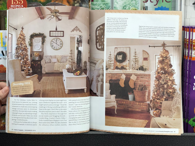 I am here today to share some very exciting news with all of you...our home is featured in the Country Sampler Christmas issue and it just hit the newsstands!!! When you read the article you will find out how this all got started, my love for decorating started at a very early age. When I received an e-mail awhile back asking if I would be interested in having my home photograph for a Christmas issue, I almost fainted. I never in a million years thought this opportunity would come my way, but it did. My sweet and loving husband Jack, has always been my biggest supporter. I have approached him with some big projects for our home over the years and he has always jumped right in and helped me get the projects completed. Thank you Country Sampler for choosing our southern Alabama home for your magazine. You can get your hands on a copy of the magazine at Michael's, Wal-Mart, Kroger, Books-a Million and Barnes & Noble.