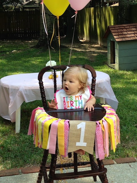 Our precious little Sadie just turn one and we all celebrated her birthday on the 9th, at her "Pink Lemonade Stand" party. Everything at the party screamed pink lemonade and the colors were pink and yellow. Sadie had her very own lemonade stand located outside by the front door (it was a DIY project that her dad and mom worked together on). We all had so much fun celebrating this first birthday with family and friends. Her parents did an amazing job on putting this party together and I know that seeing her having so much fun, just made their day.